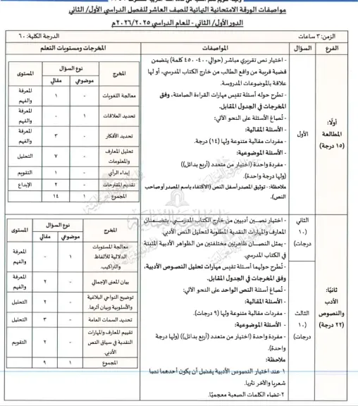 وجّهت الوزارة بإعداد 3 نماذج امتحانية مختلفة لكل مادة لصفوف النقل، على أن تكون جميعها متساوية في مستوى الصعوبة والوزن النسبي، بما يضمن تحقيق العدالة وتكافؤ الفرص بين الطلاب.